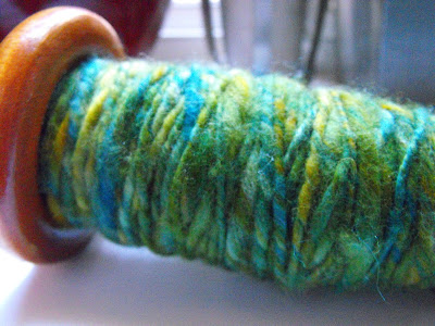 I have recently had the urge to try a little bit of hand spinning with a drop spindle. I am so busy knitting and crocheting I find it difficult to put down the needles or hook to do much of anything else, including reading the new book I bought by Wally Lamb. Just before Christmas I purchased a kit at the City of Craft sale in Toronto. It came with what appeared to be Kool Aid dyed roving, a drop spindle and a few sheets of printed details. While I didn't find the sheets to be very helpful in the instructions department, it was a pretty good deal for the kit at $16. I ended up looking on YouTube to find out how to go about taking up hand spinning. My favorite instructor by far was Abby Franquemont. She is also the author of Respect the Spindle.