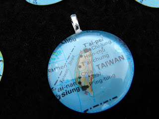 Some papers used for the pendants come from Italy and others are recycled out of date school atlases, like the pendant pictured below.